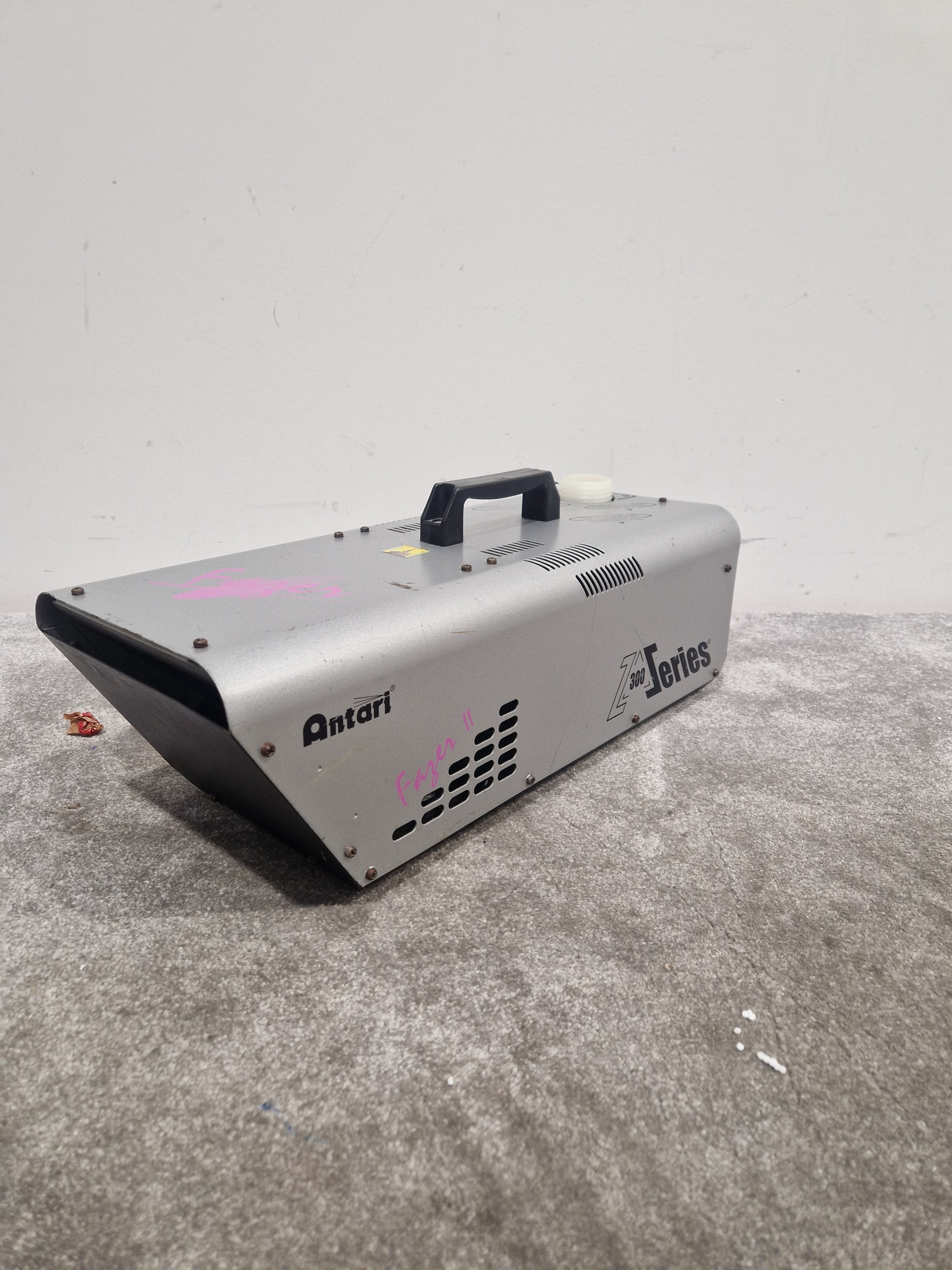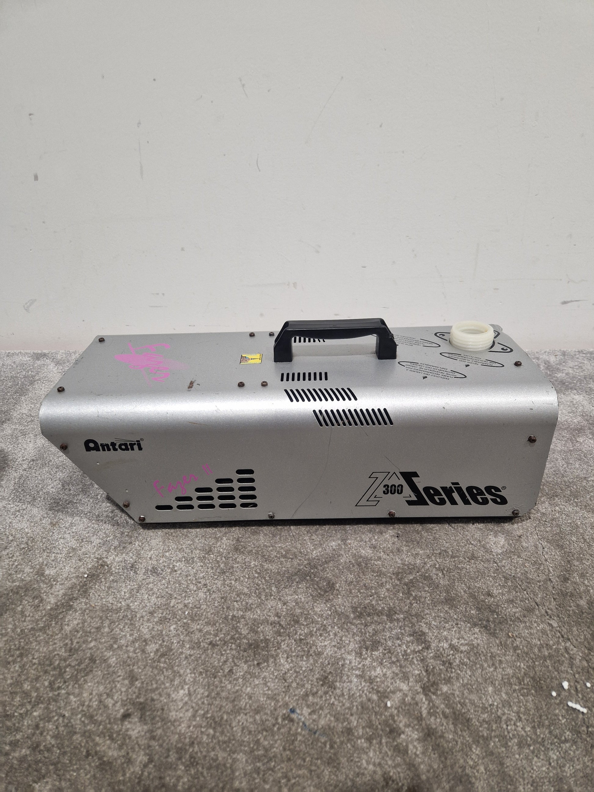 This Antari Fagen 2 Z 300 Series is being sold as a Spares or Repair item. While the unit powers up and the fan operates, it currently does not produce any mist. This condition suggests potential issues with the mist generation component, making it ideal for those looking to repair or use it for parts. Please be aware that no further quality checks have been performed.