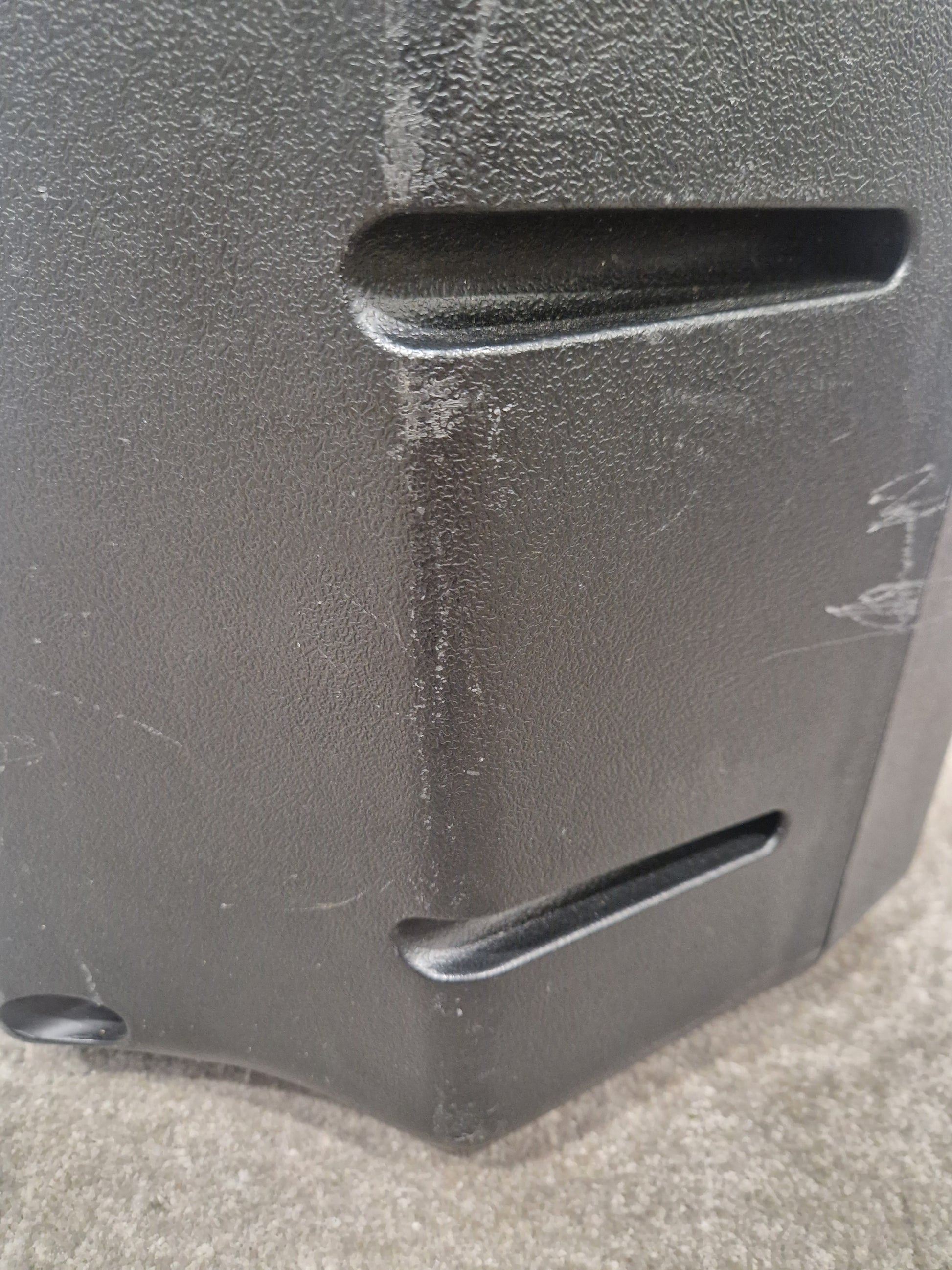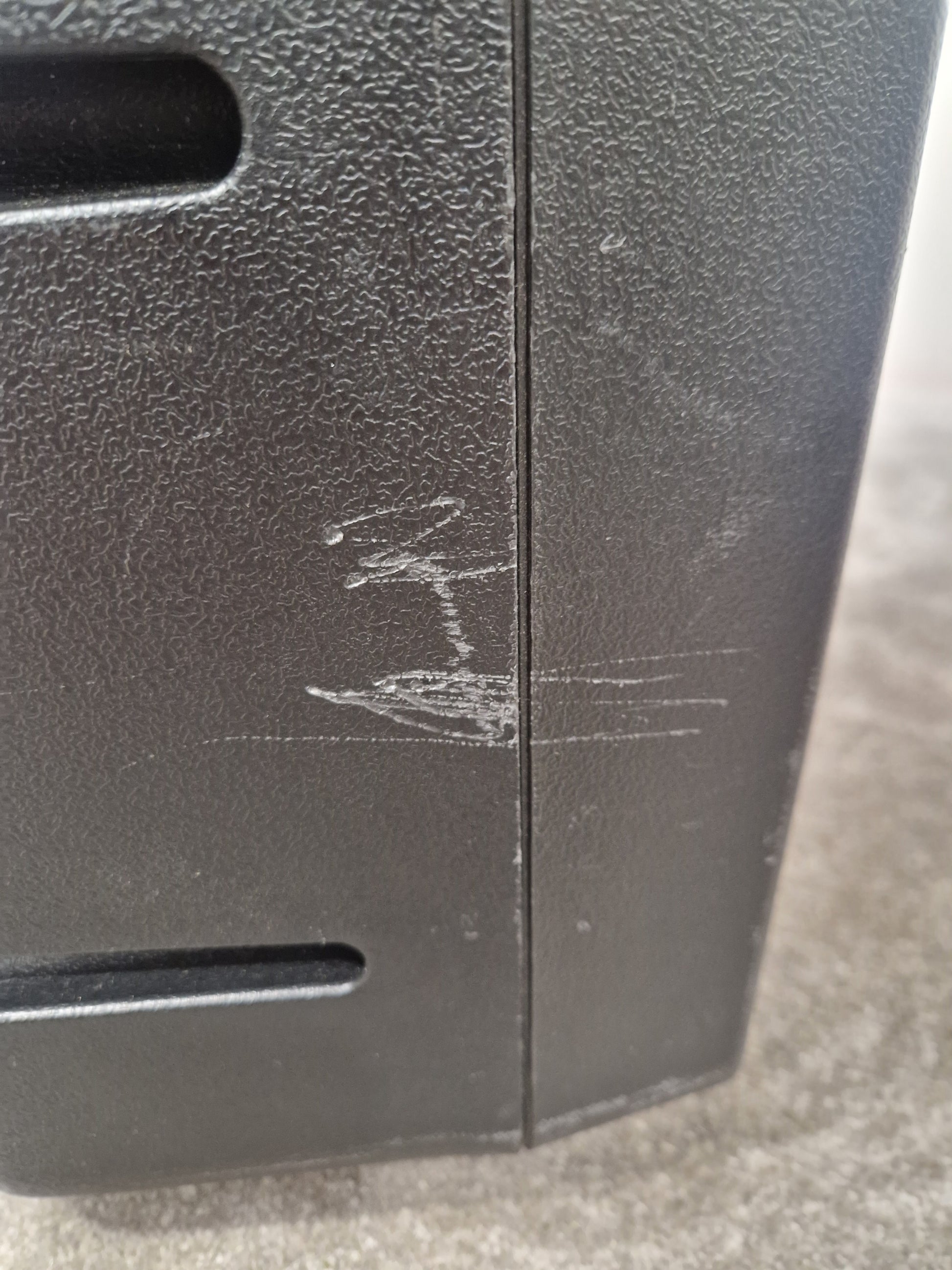 The Behringer Eurolive B112d is in good overall condition, with minor cosmetic imperfections that do not affect its functionality. There are visible scratches on the surface, likely from regular use and transportation. Additionally, there are small dings that can be felt upon close inspection, but they do not compromise the structural integrity of the speaker. General marks are present, typical of a piece of equipment that has been used in various settings. Despite these minor blemishes, the speaker remains in fully operational condition and is ready to deliver high-quality sound.
