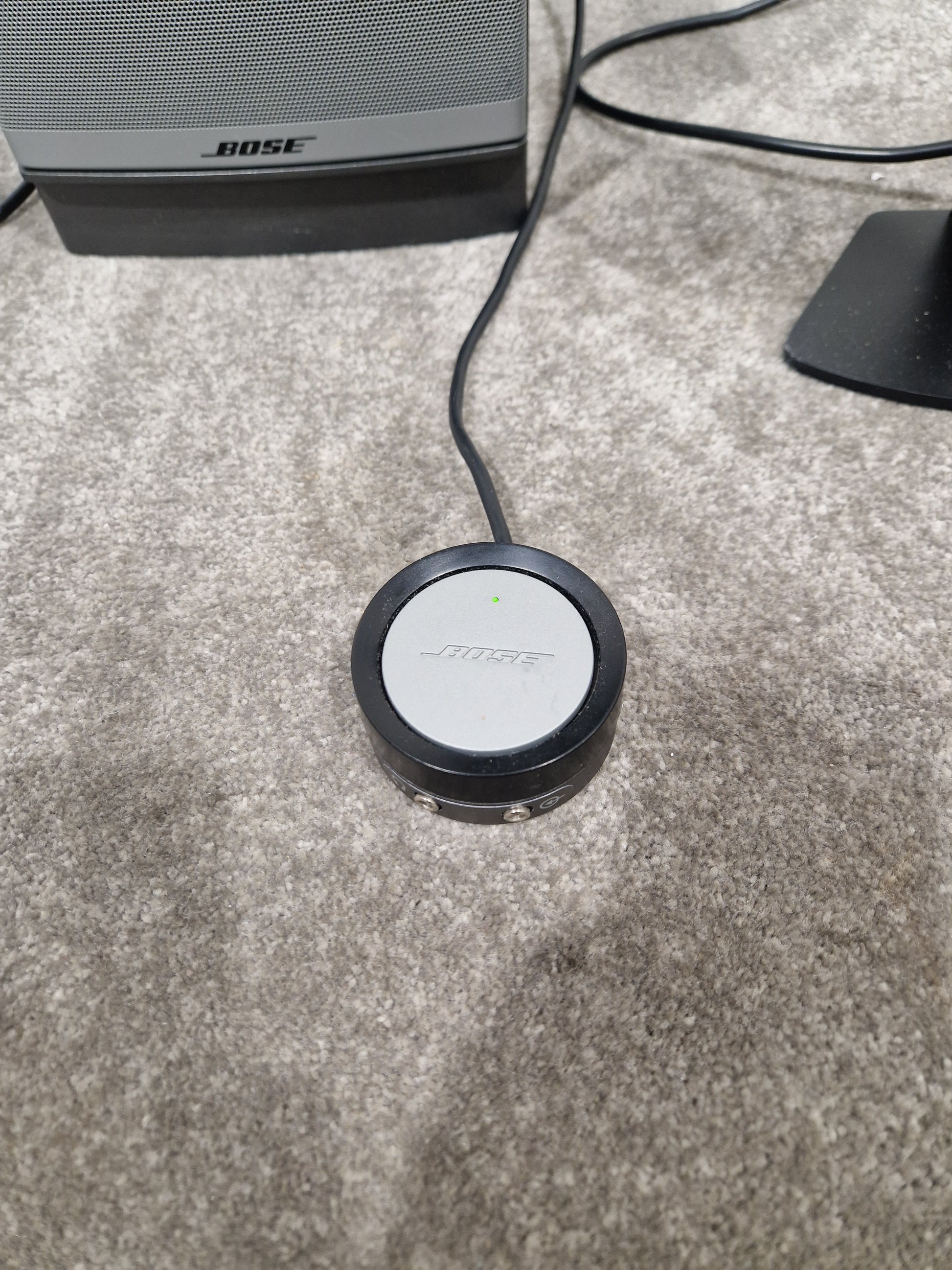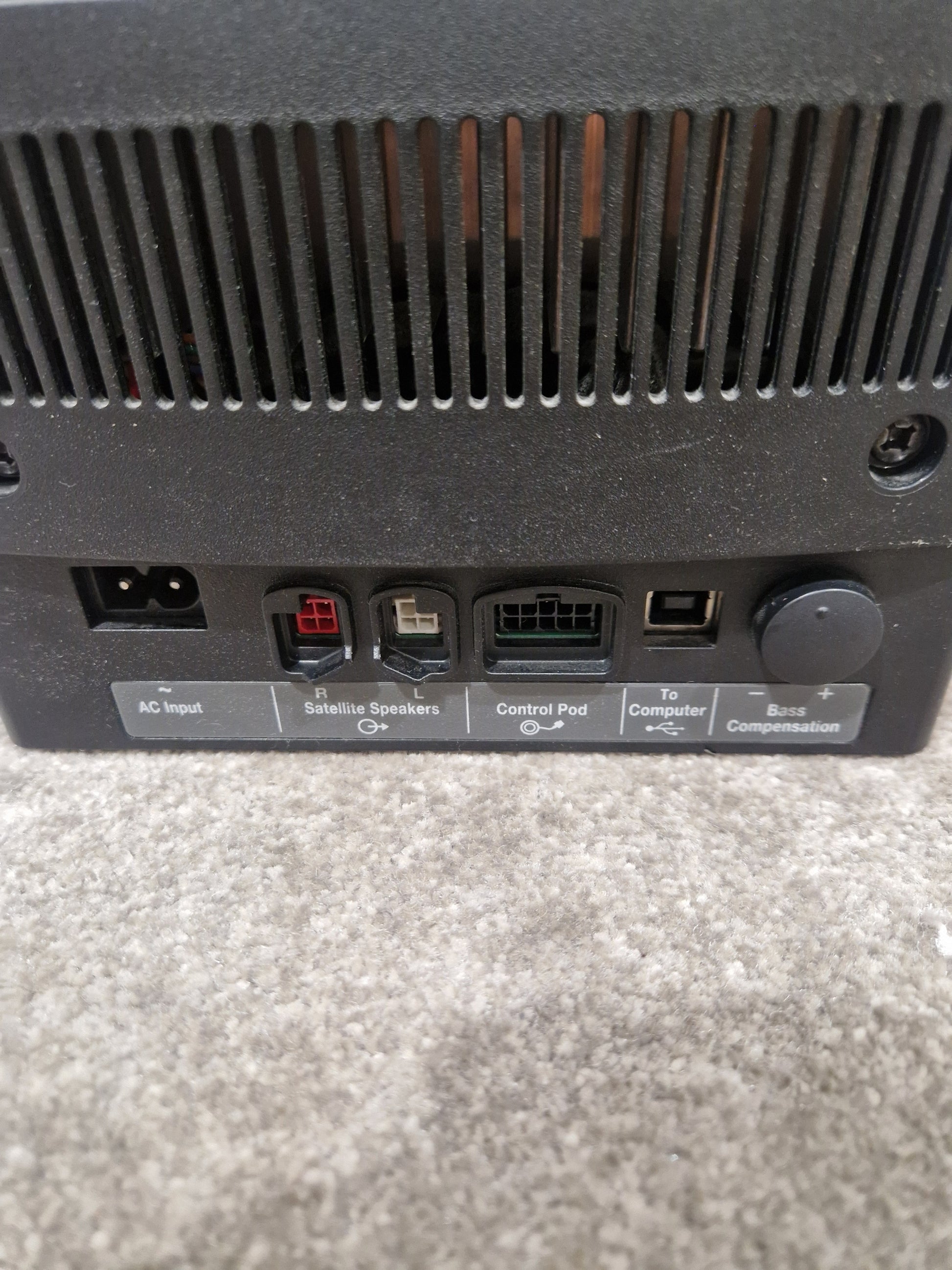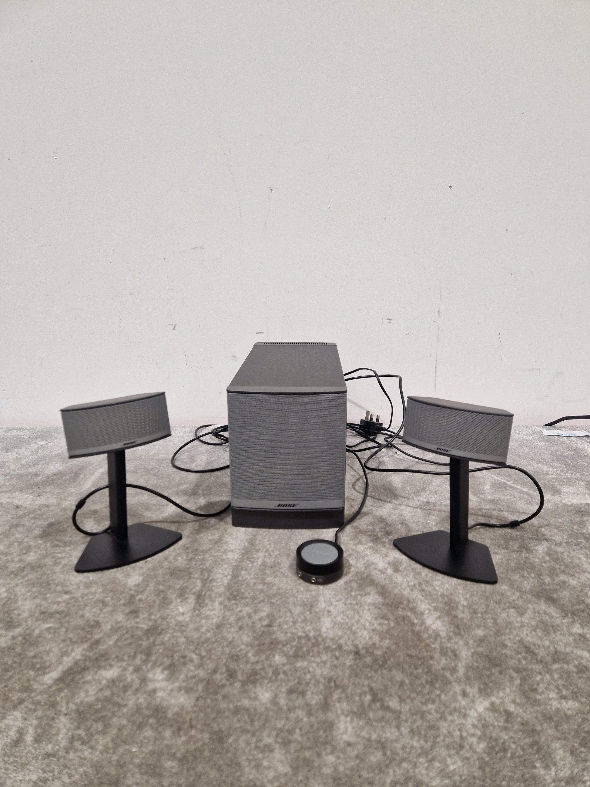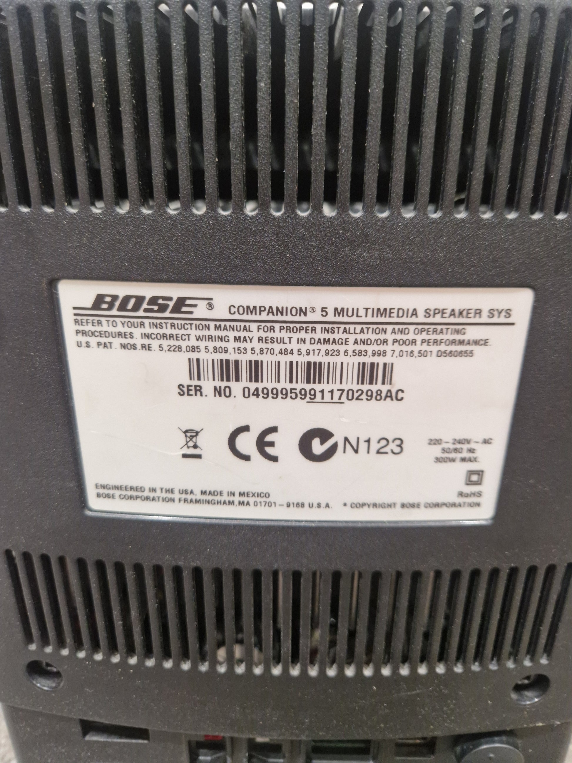 Included with this system is the essential power supply, ensuring you have everything needed to set up and enjoy your Bose Companion 5 immediately. The power supply is in perfect working order, allowing for seamless integration into your setup.
