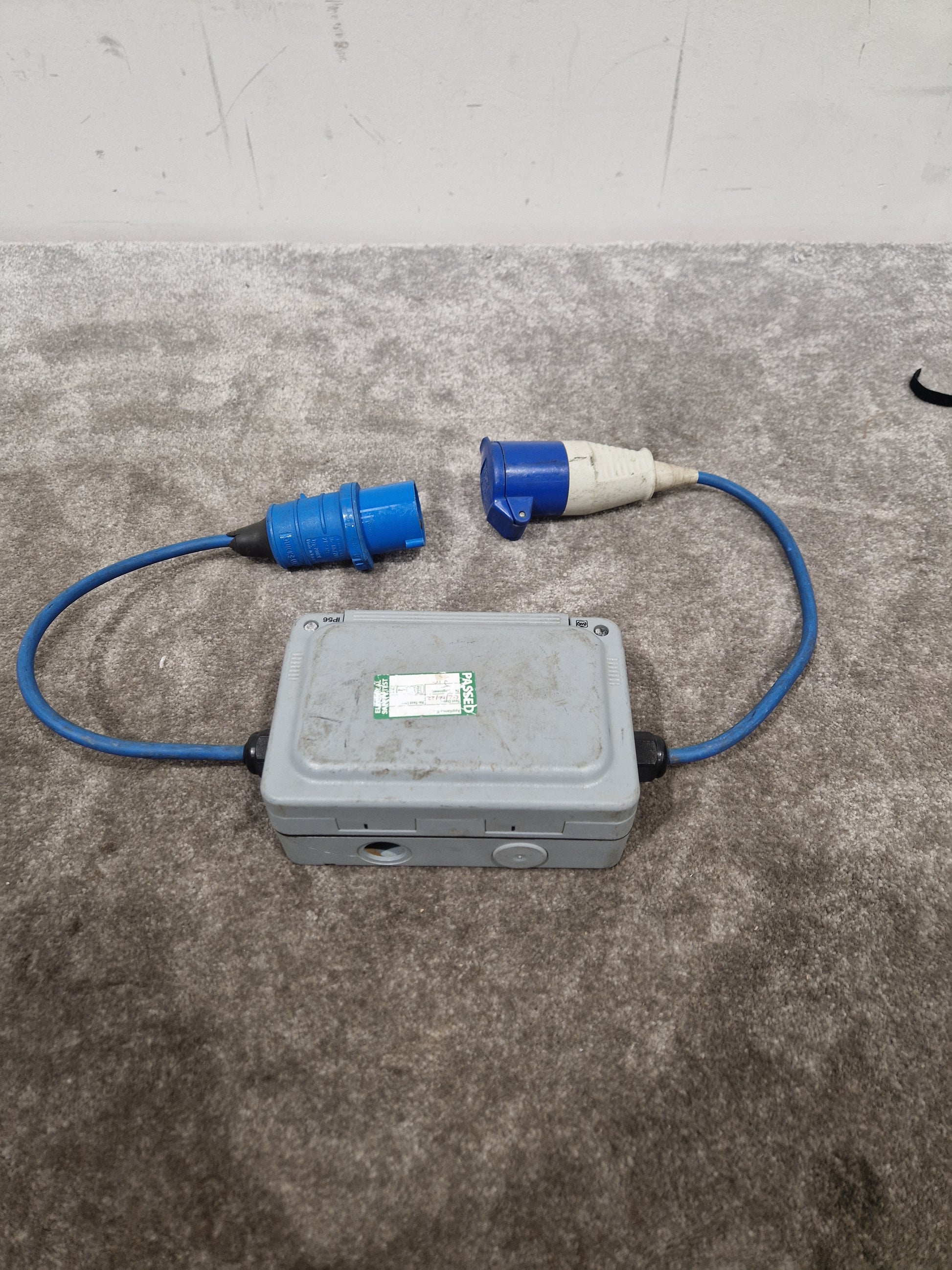 This Double 16A Cable TO-13 A Two Gang Socket is in good condition, displaying some expected wear and tear that includes scratches, dings, and general marks from previous use. While it remains untested, the socket's robust construction suggests it is ready for reliable service. Its cosmetic imperfections are typical for items in its category, but they do not detract from its utility.