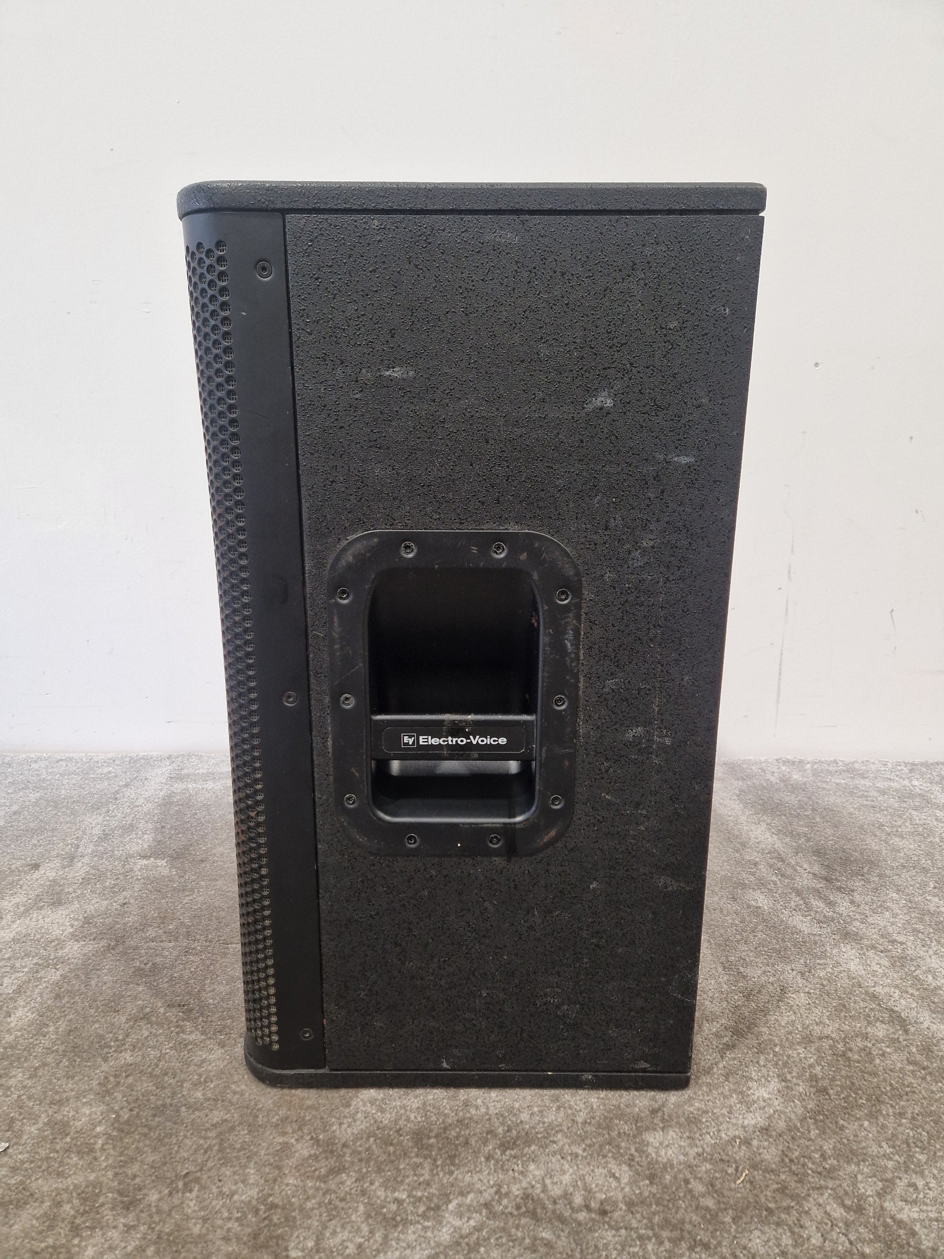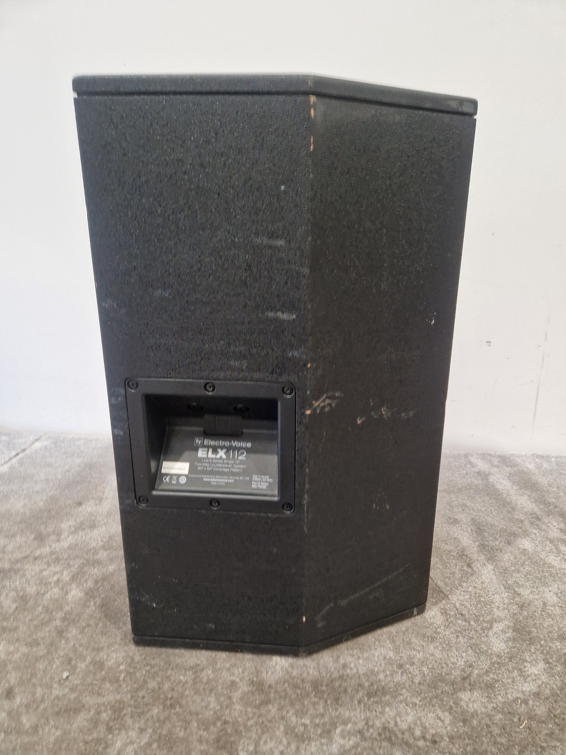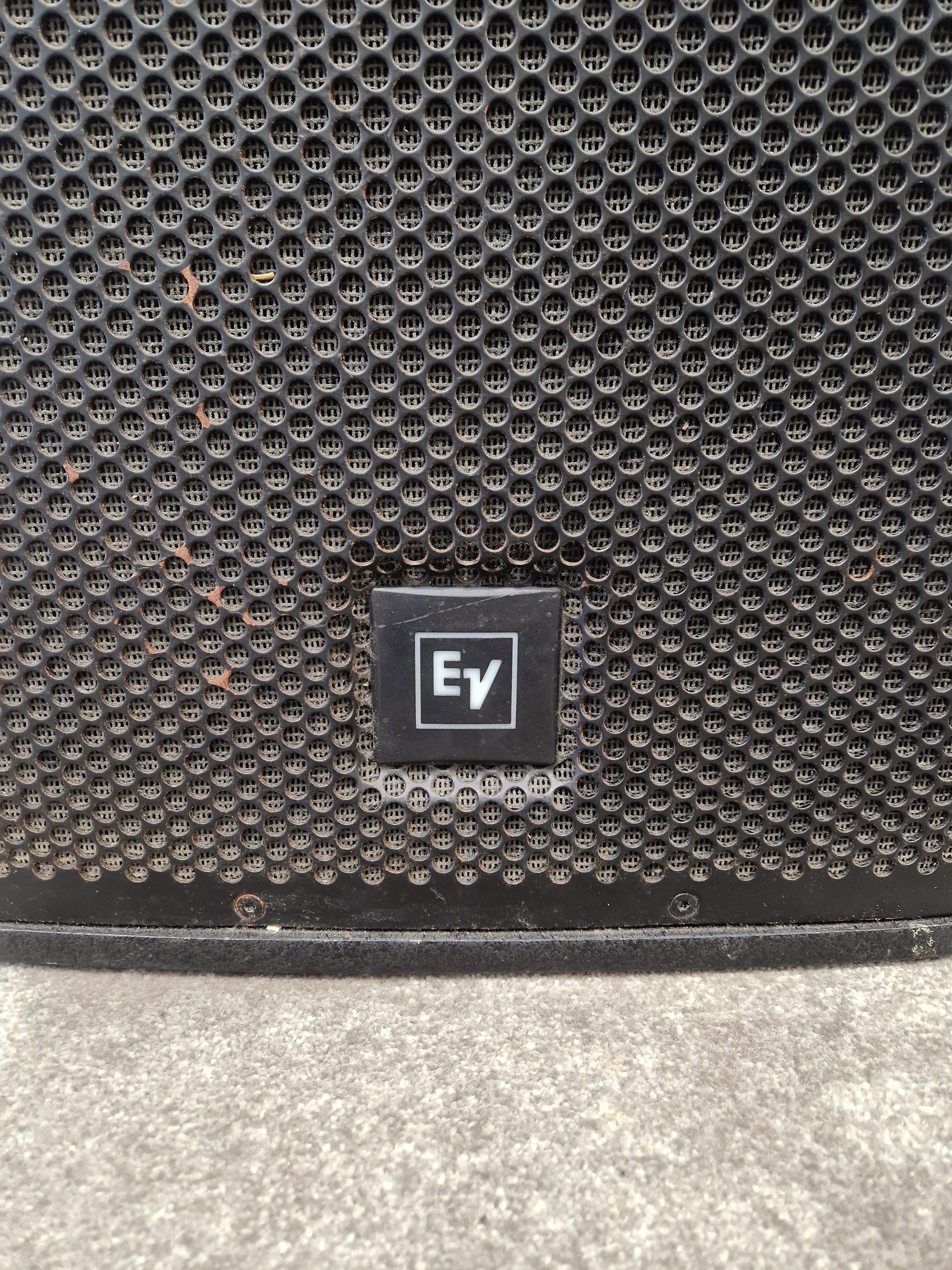 Please check all photos of the item carefully, as they form part of the description of the condition of the item. This EV ELX-112 is in Fair condition, exhibiting notable dings and general marks across its exterior. While the speaker's output is generally robust, there is a distorted noise present in the sound output. Aside from this issue, the overall sound quality remains largely unaffected.