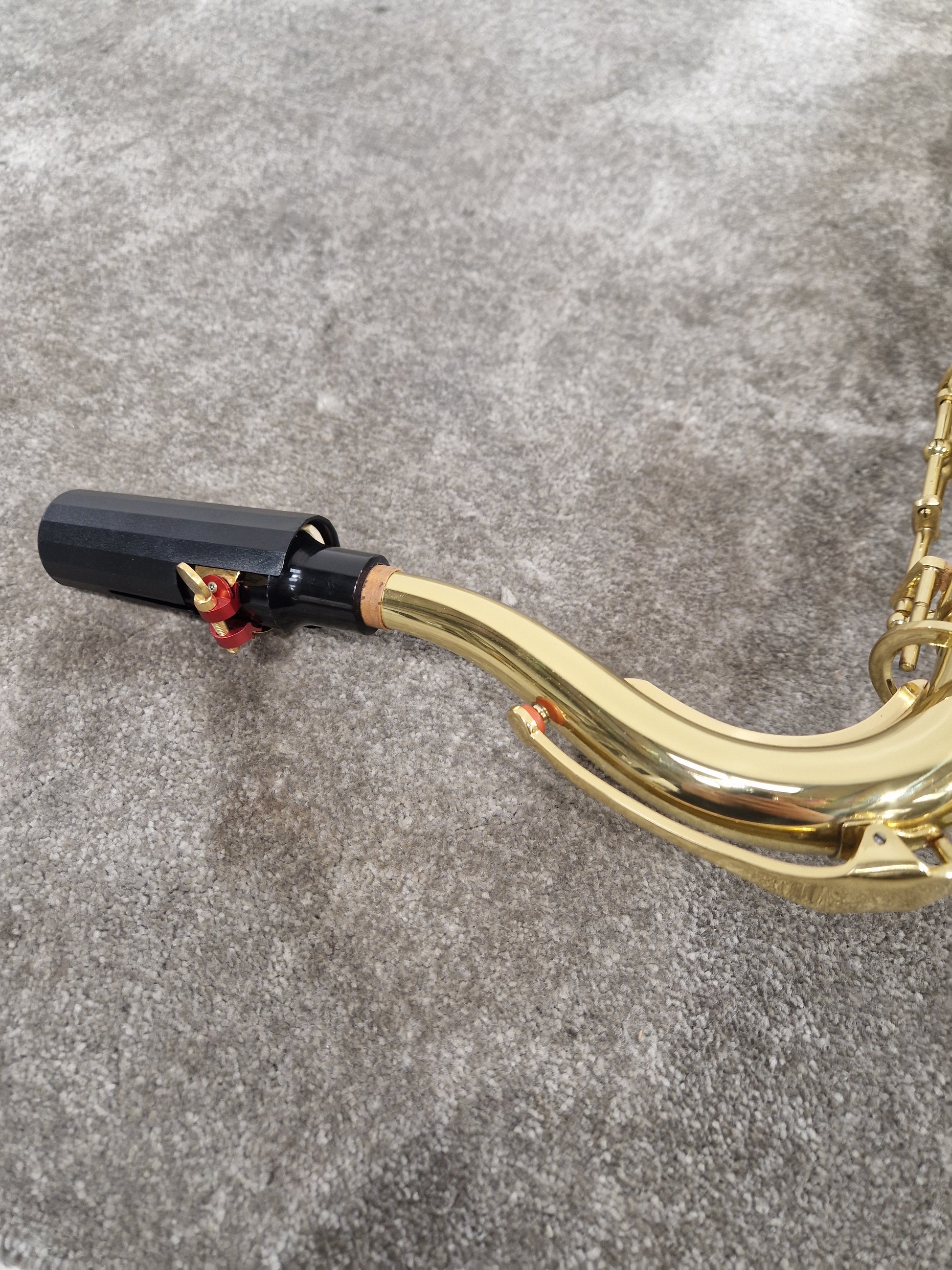 This Odyssey OTS800 Premiere Bb tenor saxophone is in excellent condition, showing only minor scratching from previous use. These light cosmetic marks do not affect performance, and the instrument remains in full working order, producing a rich and reliable tone.