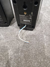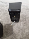 The Panasonic Sb-hc450 Speaker Set is in excellent overall condition, offering a high-quality audio experience with minimal signs of wear. There are minor dings on the surface of the speakers, which do not affect their performance or aesthetic appeal significantly. Additionally, the wires on the speakers are quite small, which may require careful handling during setup. Despite these minor cosmetic issues, the set remains in excellent working order, ready to enhance your home entertainment system.