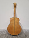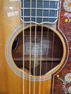 This guitar features a solid Sitka spruce top and flamed maple back and sides, providing a bright and powerful tone with excellent projection. The mahogany neck, paired with a micarta fingerboard, ensures smooth playability and durability. Equipped with a Fishman Sonitone preamp system, it offers clear and natural amplified sound for live performances. The intricate detailing, including an abalone rosette and mother-of-pearl inlays, adds visual elegance to its superb tonal characteristics.