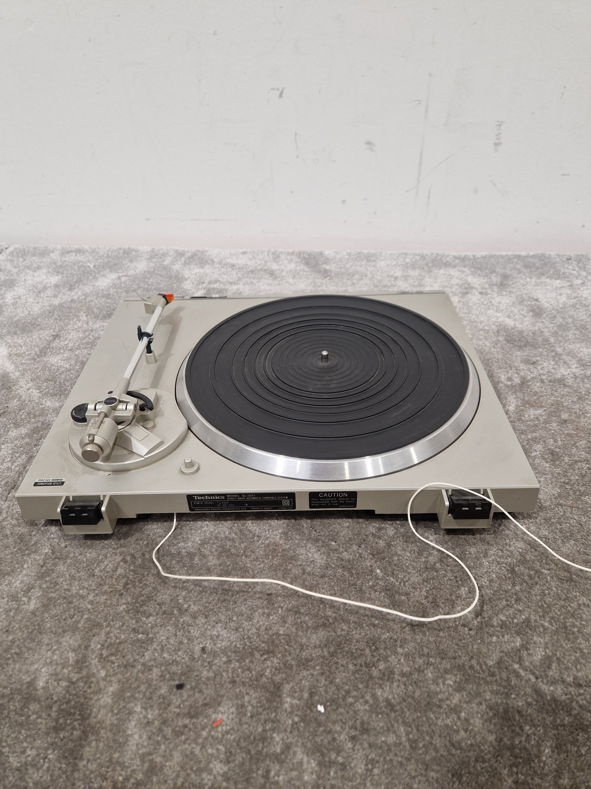 This Technics SL-D21 turntable is in very good condition, exhibiting some scratches and general marks that are typical for its age but do not affect its performance. The cosmetic imperfections are minor and do not detract from its overall aesthetic appeal or functionality.