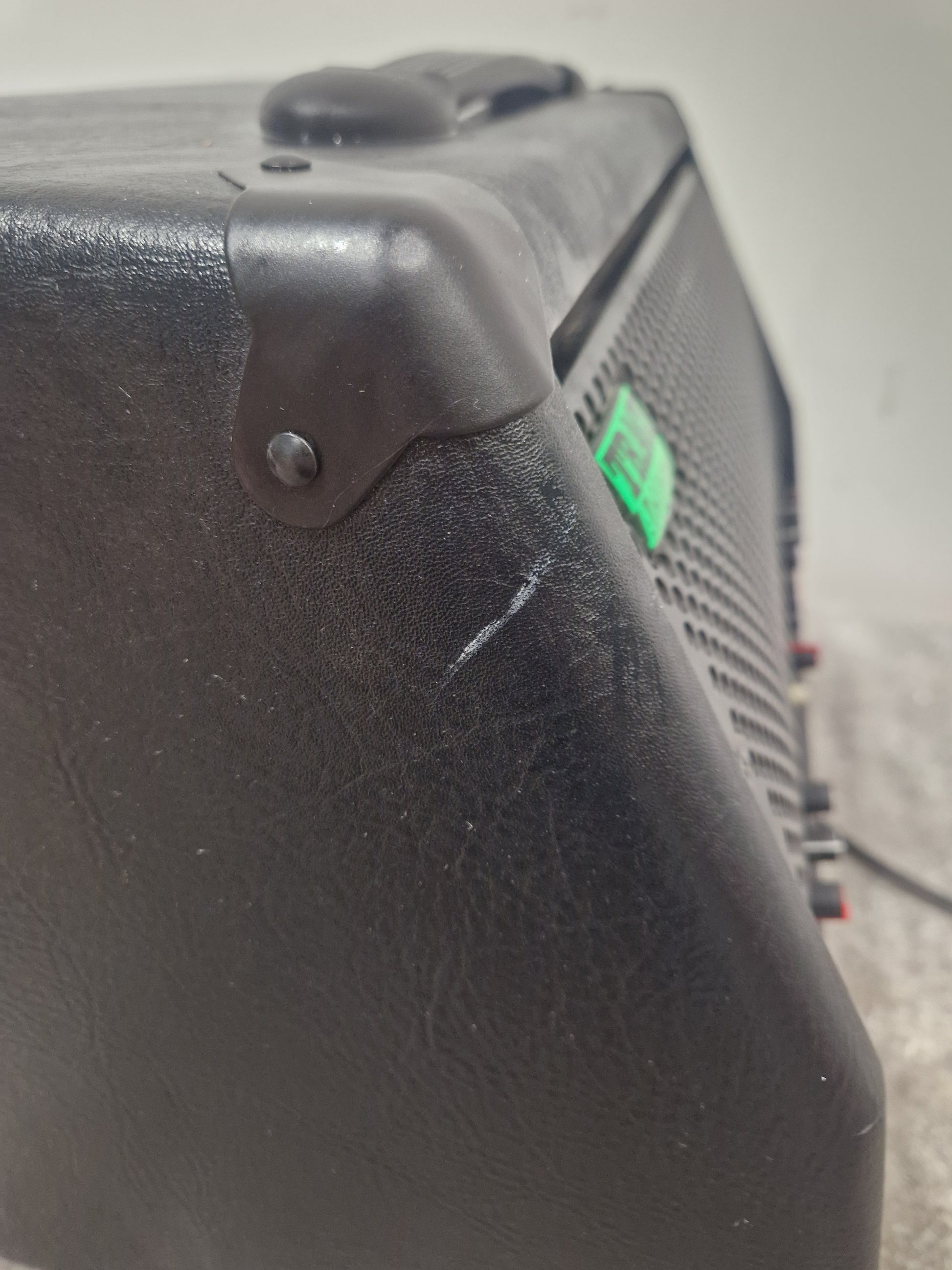 This Trace Acoustic Ta100r Amplifier is in good overall condition, despite showing signs of normal wear and tear. The exterior of the amplifier exhibits scratches and dings, which are cosmetic and do not affect its functionality. The unit has been fully tested and is operational; however, upon powering on, a large fuzz noise is audible. This issue may require professional servicing to resolve, but the amplifier remains a valuable piece of equipment for those looking to restore it to its full potential.