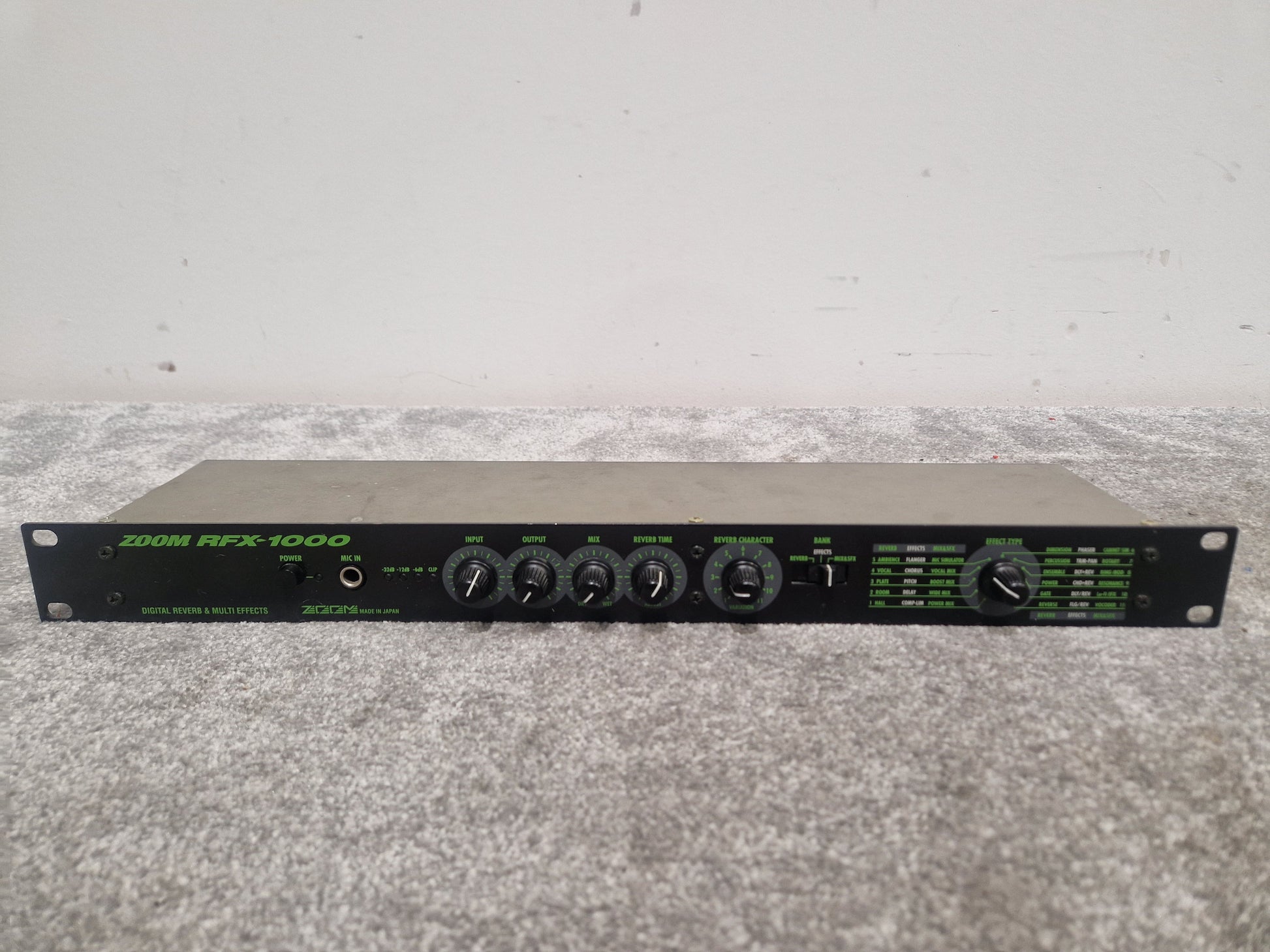 The Zoom RFX-1000 is in very good condition, showcasing its reliability and enduring appeal. While it does have some scratches, dings, and general marks from previous use, these cosmetic issues do not affect its performance. The unit has been carefully maintained, ensuring that it functions as intended, providing a great addition to your audio setup.